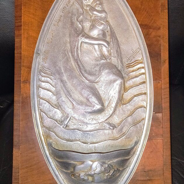 Placca in bronzo su legno ritraente Benito Mussolini Duce d’Italia con l’elmetto misura 18×14 cm ☎️347/1893949 -