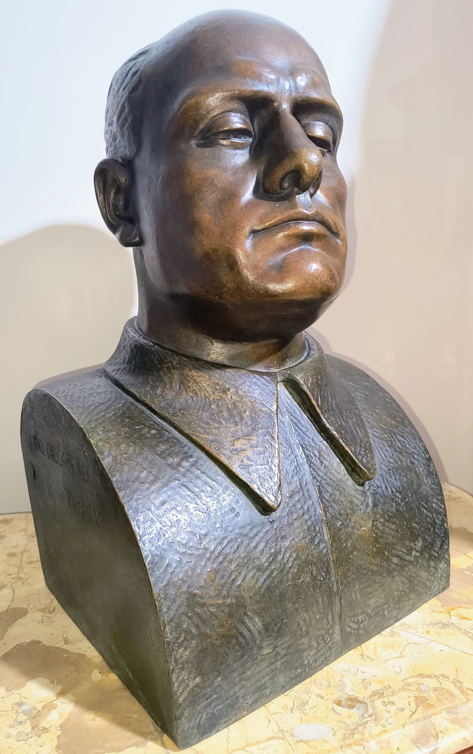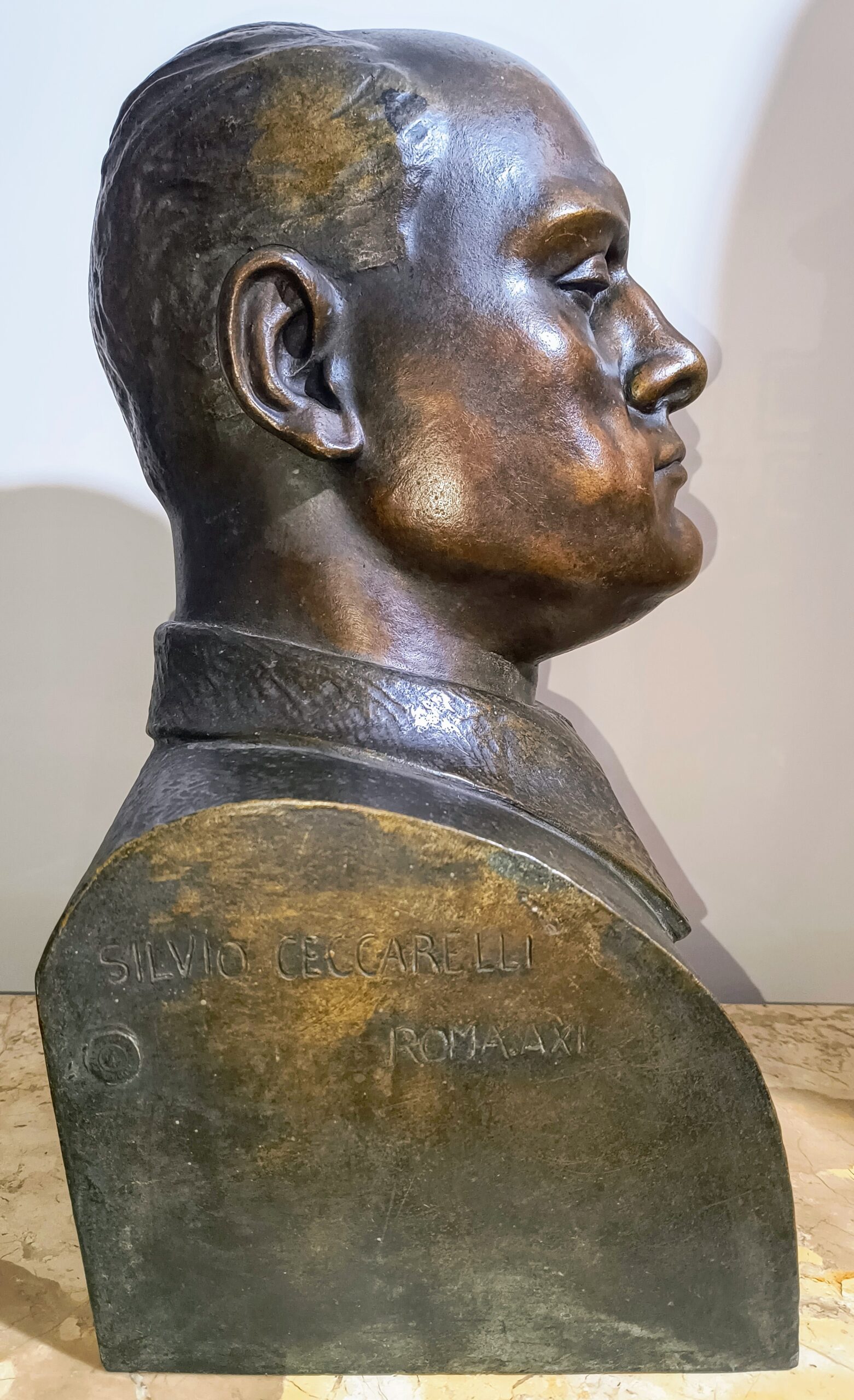 Grande busto in bronzo alto 50 cm ritraente Benito Mussolini a firma Silvio Ceccarelli Roma. AXI