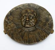 GRANDE EFFIGE IN BRONZO DEL DUCE CON ELMETTO ANNI ’30 CON DICITURA IN LATINO